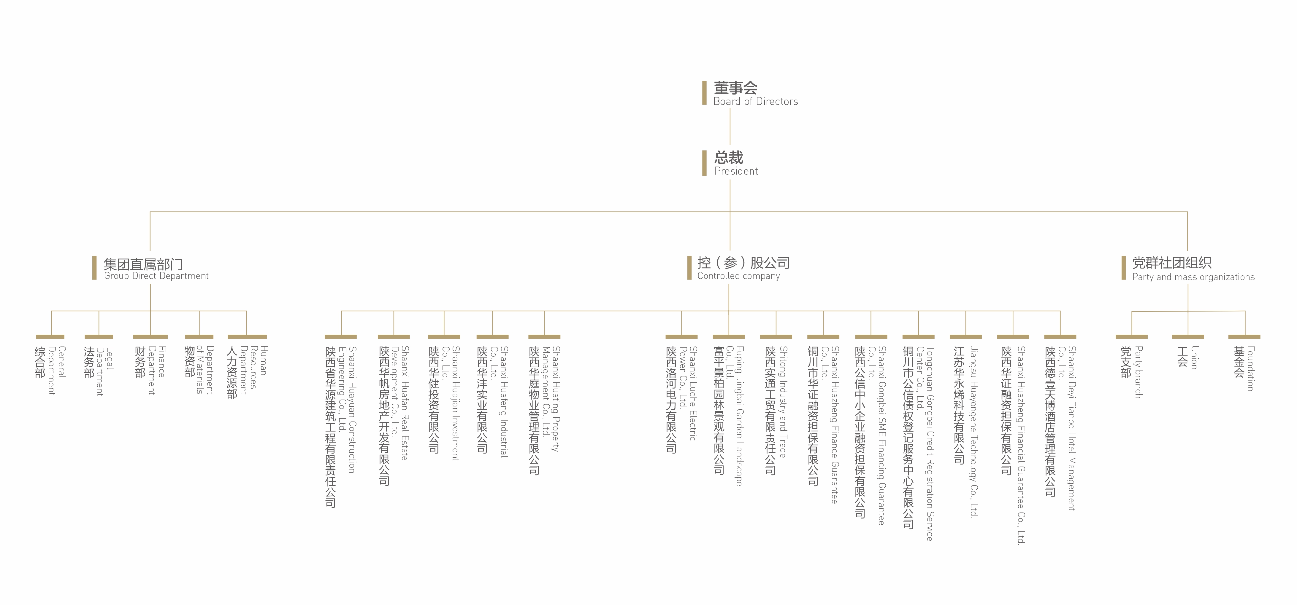 華原控股投資集團(tuán)有限公司成立于2017年,總部位于西安,注冊資本金5億元人民幣。產(chǎn)業(yè)主要涉及地產(chǎn)開發(fā)、能源工程、電力工程、建筑工程、酒店餐飲、物業(yè)管理、金融、農(nóng)副產(chǎn)品銷售等相關(guān)領(lǐng)域。公司控股參股的有陜西華健投資有限公司、陜西省華源建筑工程有限責(zé)任公司、陜西華帆房地產(chǎn)開發(fā)有限公司、陜西華庭物業(yè)管理有限公司、陜西洛河電力有限公司、陜西華灃實業(yè)有限公司、陜西實通工貿(mào)有限責(zé)任公司、銅川公信債權(quán)登記服務(wù)中心有限公司、陜西公信中小企業(yè)融資擔(dān)保有限公司及江蘇華永烯科技有限公司等十余家子公司。 華原控股總部下設(shè)有綜合部、財務(wù)部、人力資源部、物資部、法務(wù)部五個直屬部門,公司現(xiàn)有員工400余人,一二級建造師28人,中高級職稱102人,其他工程技術(shù)和專業(yè)管理人員130人。 華原控股投資集團(tuán)有限公司以“和諧”為企業(yè)核心價值觀,秉承“質(zhì)量創(chuàng)造品牌、誠信鑄就未來”的經(jīng)營宗旨,堅持“誠信、敬業(yè)、高效、創(chuàng)新”的企業(yè)發(fā)展理念,公司各項業(yè)績成績喜人,公司整體也實現(xiàn)了跨越式的發(fā)展。華原控股將以陜西市場為依托,積極拓展全國市場,以房地產(chǎn)開發(fā)、清潔能源利用、工程建設(shè)為三大主營業(yè)務(wù)板塊,實施大項目帶動發(fā)展,實施突出主業(yè),多業(yè)并舉的發(fā)展理念,實施以市場化運(yùn)作為手段,整合利用優(yōu)勢資源,做大做強(qiáng)華原品牌。